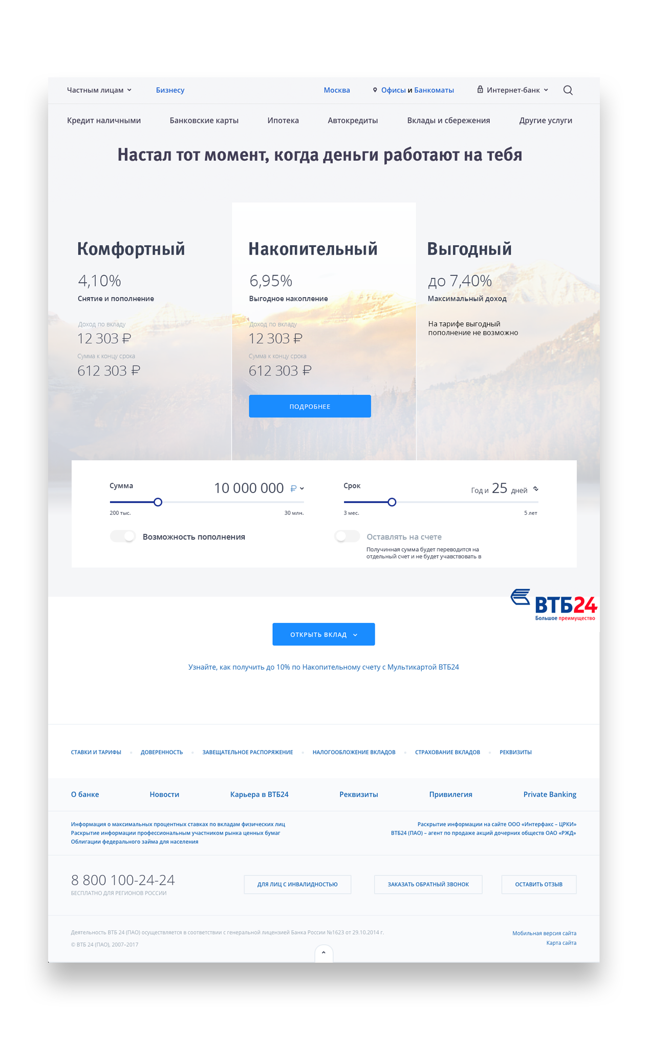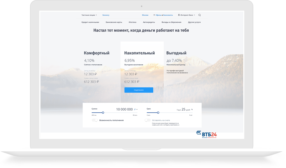 В интерфейсе калькулятора можно перейти на конкретный вклад. Все заданные параметры сохранятся. Вернуться к сравнению и ознакомиться с другим предложением так же легко.